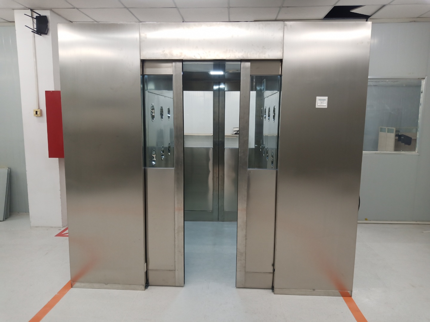 風淋門吹淋結束后,推開出門進入潔凈無塵室。