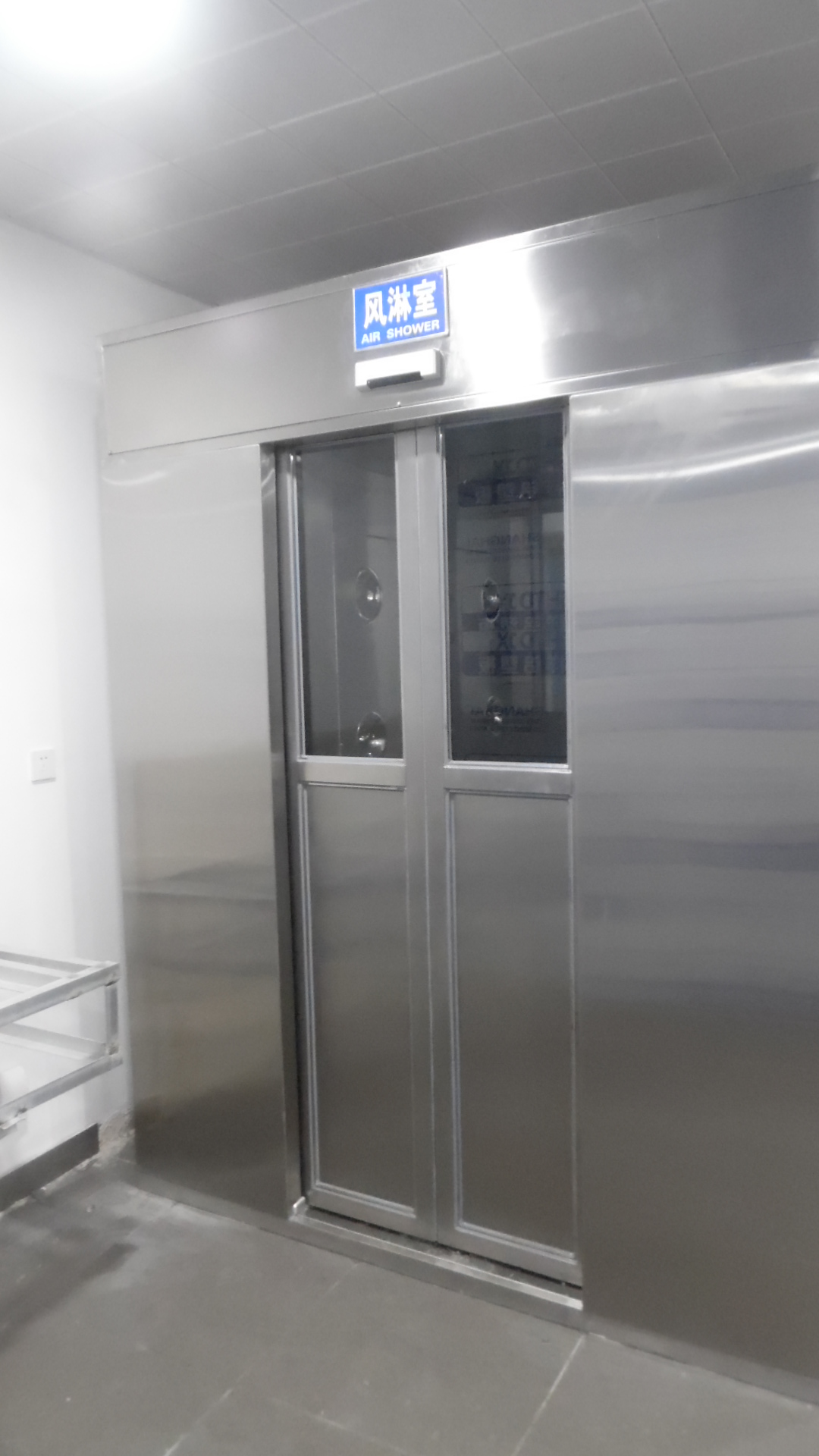 3.拉開不銹鋼風淋門進入風淋室后,風淋門立即自動關閉外門,紅外線感應,風淋自動啟動,吹淋15秒。