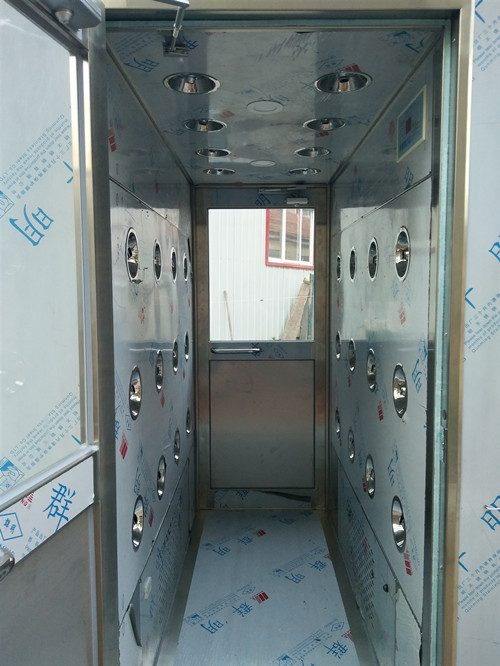 3、貨淋室兩側(cè)外箱體上(此處電源開(kāi)關(guān)可預(yù)防緊急情況下切斷電源,有效地提高工作人員的人身安全)。當(dāng)電源指示燈不通時(shí),不防重新檢查一下以上四個(gè)風(fēng)淋室電源處。